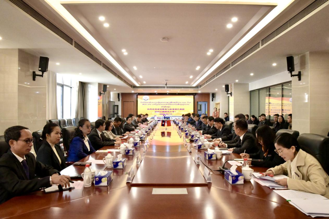 张祖武对代表团的到访表示欢迎,并介绍了学校的办学历史、发展成就及国际化办学情况。他表示,近年来,双方在人才培养、联合实验室建设、教育数字化合作、国家治理研修班、职业教育合作等方面取得了丰硕成果,成为中老命运共同体在教育领域合作的生动实践。副部长此访为双方深化交流、拓展合作提供了新的契机,期待与老挝教体部及各高校在人才培养、科学研究、教育数字化转型等领域进一步加强合作,共同推动中老教育合作不断走深走实,为构建高水平、高质量的中老命运共同体,为促进两国人民的世代友好与共同繁荣,贡献更多教育的力量。