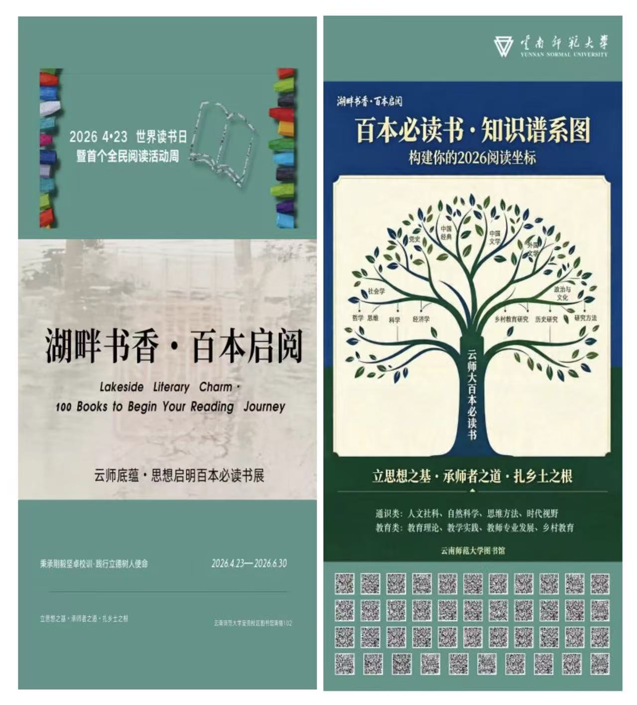 启动仪式结束后,师生参观了图书馆精心策划的“百本必读书主题展(第一季):云师底蕴·思想启明”和“AI经典时空对话”主题书展。在“百本必读书·知识谱系图”展板前,师生通过手机扫码现场体验了阅读电子图书的便捷。
