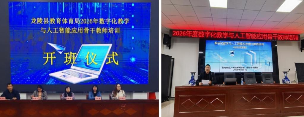 1月29日至2月1日,云南师范大学信息学院AI赋能教育教学培训团队受邀分赴龙陵县教体局、云南师范大学附属瑞丽国门基础教育集团,开展2026年数字化教学与人工智能应用专项培训,两地共150余名中小学骨干教师参加培训。