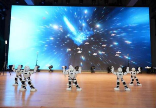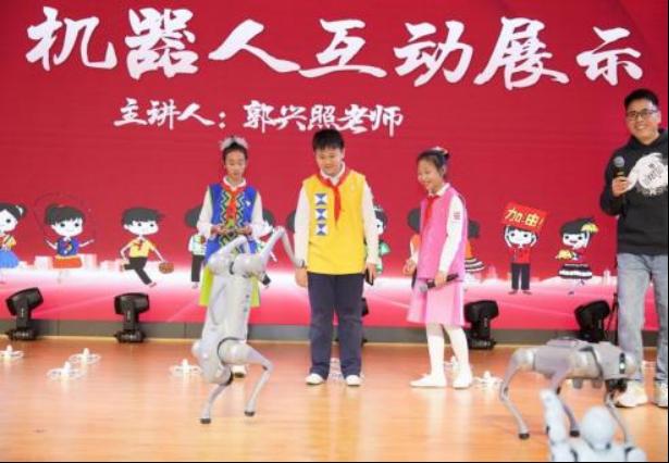 典礼现场科技感十足,无人机编队展示、机器人舞蹈、机器狗互动、VR体验、AI互动等环节精彩纷呈。同学们在与AI机器人的趣味互动中感受科技魅力,启迪创新思维,让科技与梦想的种子在心中悄然生长。