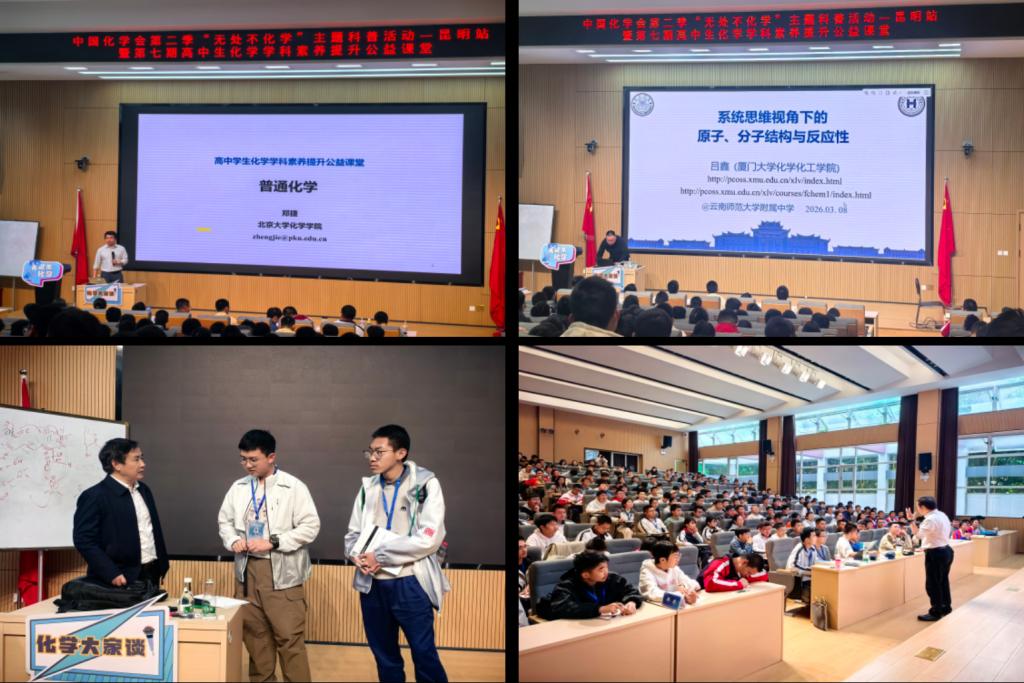 3月5日—3月8日,在中国化学会“帮扶西部”计划支持下,云南师范大学化学化工学院承办了由中国化学会科普工作委员会和竞赛工作委员会主办的第二季“无处不化学”主题科普活动暨第七期高中学生化学学科素养提升公益课堂。来自云南省、贵州省、广西壮族自治区等38所中学的300余名高中师生参加了此次活动。活动开幕式由云南省化学化工学会副秘书长、云南师范大学化学化工学院副院长王帮进主持。
