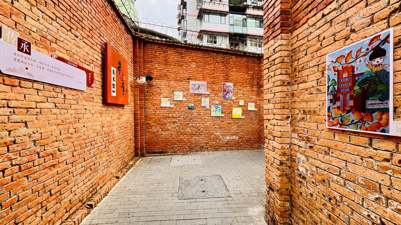 近日,云南师范大学附属小学文林校区携手文林社区居委会,联合主办的“巷陌弦歌,从联大走来——《童画联大,附小的时光走廊》小学生绘画作品展”在文林社区启幕。小学生们以画笔绘就联大主题画作,将西南联大故事搬上街巷墙面,打造出兼具文化底蕴与童趣的彩色“时光走廊”,成为文林街新晋打卡地标。