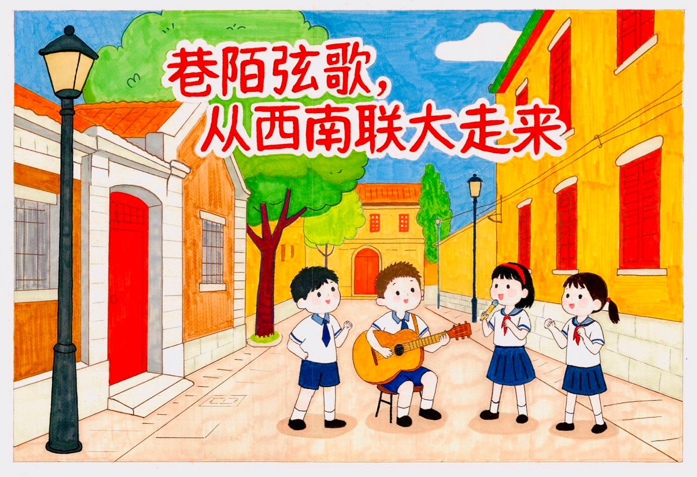此次校社联动的美育实践,将校园美育成果与社区公共空间融合,让孩子们成为文化传承的小小创作者与传播者,既为学生搭建了艺术展示平台,也让社区居民与师生近距离感受联大精神,实现校园教育与社区文化的双向赋能。