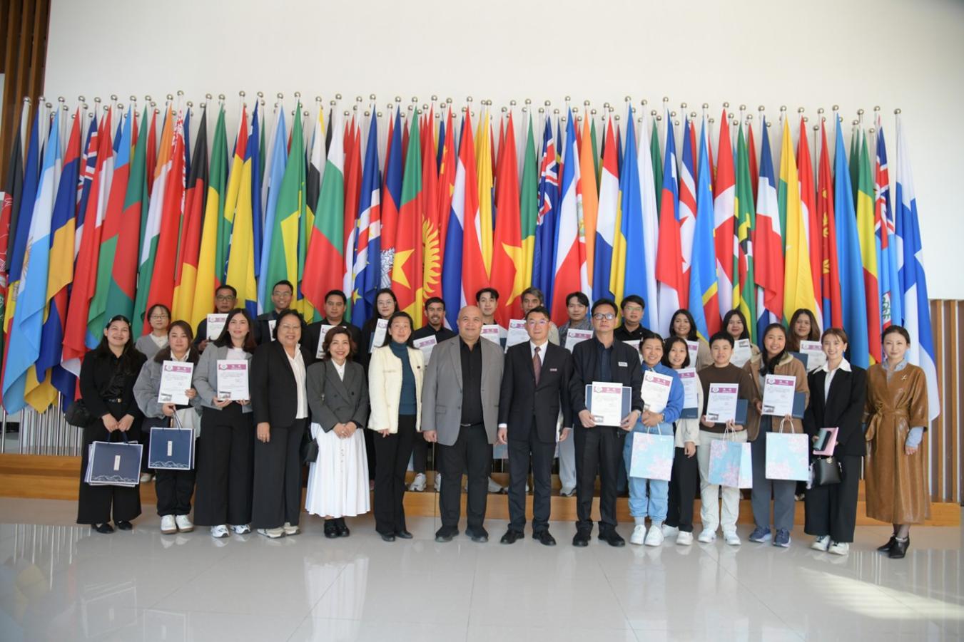 3月27日,泰国普吉皇家大学骨干教师研修班在我校结业。云南华文学院党委书记陈永荣、泰国普吉皇家大学校长希兰・普拉萨恩坎、华文教育基地办公室工作人员及全体学员参加了结业典礼。