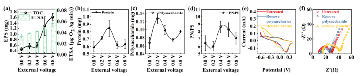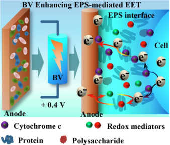 3月17日,云南师范大学能源与环境科学学院李建昌教授课题组刘洪周博士在国际知名期刊Bioresource Technology(IF 9.0)上发表了题为“Bias voltage enhances extracellular polymeric substances-mediated extracellular electron transport” 的最新研究成果。该工作通过探究偏压(BV)对胞外聚合物(EPS)介导的胞外电子传递(EET)的调控机制,为优化生物电化学系统(BES)性能提供了一种创新的物理调控策略。