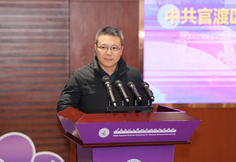 中共官渡区委副书记、区委教育工委书记郭怀广致辞。感谢会议落地官渡区,官渡区聚力昆明教育强市目标,云师大附属学校形成可推广德育经验。期待深化合作,转化资源打造德育品牌,区委、区政府将做好保障,共建五育融合示范区,培育时代新人。