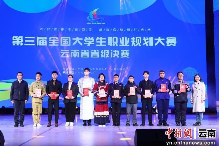 中新网云南新闻1月15日电(记者 韩帅南)1月14日,第三届全国大学生职业规划大赛云南省省级决赛在云南师范大学落幕。在比赛中,云南师范大学师生选手获得三金两银两铜的好成绩,金奖数量全省第一,同时学校获优秀组织奖,六名教师获优秀指导教师。