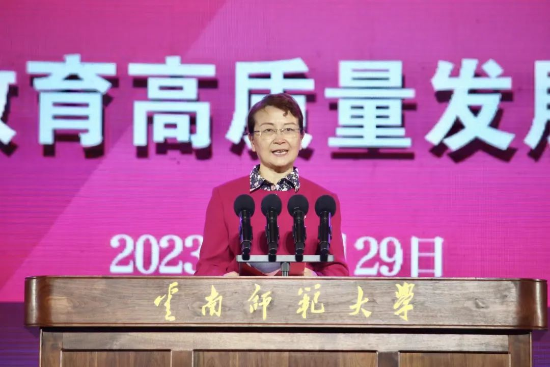 姜恩来代表中国高等教育学会,向云南师范大学建校85周年表示祝贺。他充分肯定了我校在教育教学改革、服务国家战略需求和区域经济社会发展等方面取得的成绩,并对我校高质量办学提出希望。要以党的全面领导为统领,坚持社会主义办学方向;以立德树人为根本任务,加快培养一流人才;以服务国家为最高追求,强化学校办学特色。他期待云南师范大学在新的历史起点上,扎根云岭大地,弘扬联大精神,矢志教师教育,加快推进学校事业高质量发展。