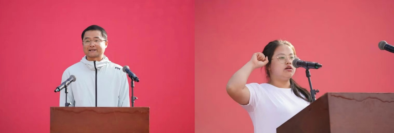 体育学院教师姜阳、管理学院学生尚药松分别代表裁判员、运动员宣誓。