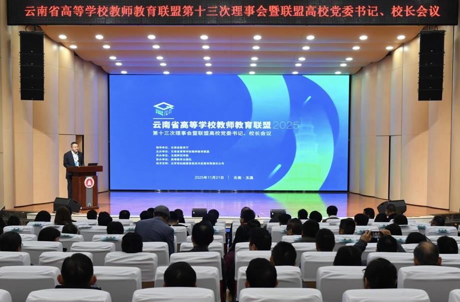 11月20日,云南省高等学校教师教育联盟高校党委书记、校长会议举行。会议以“数智驱动·育人革新 构建教师教育高质量发展新范式”为主题。玉溪市政府党组成员、副市长刘冰,玉溪市教育体育局党组书记、局长张燕华以及联盟各高校党委书记、校长、教务处处长,高等教育出版社代表,基础教育学校代表等14所联盟高校与玉溪师范学院副处级以上干部200余人参加会议。