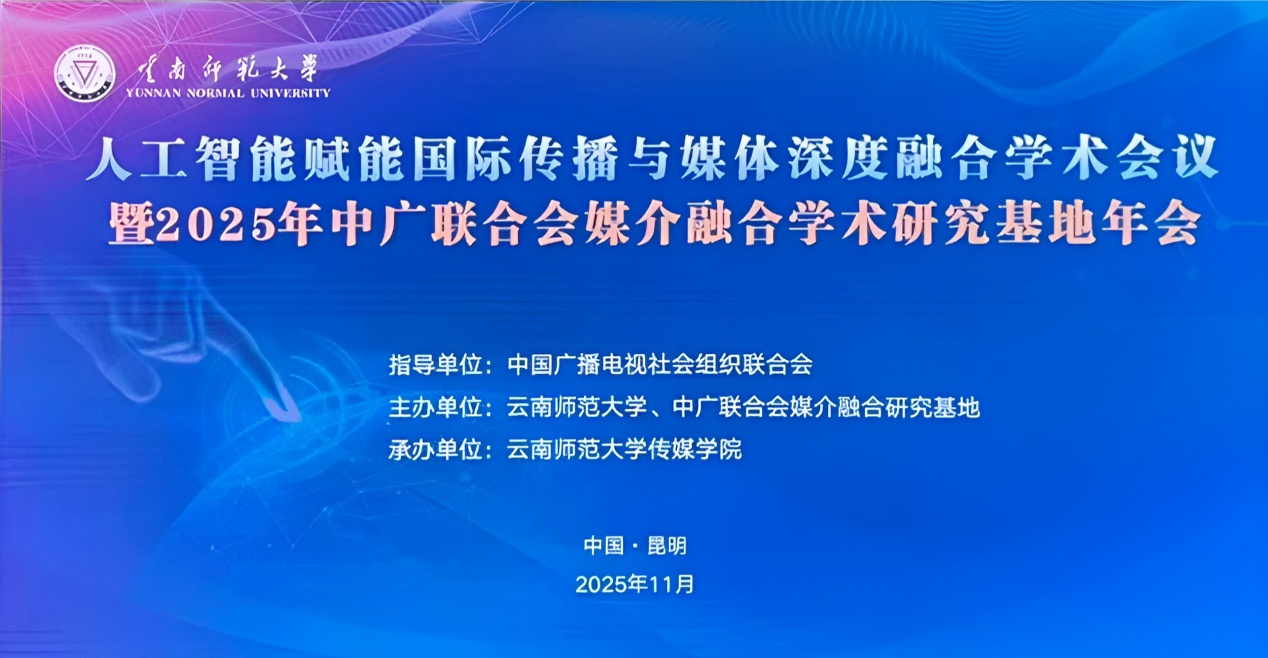 11月29日,人工智能赋能国际传播与媒体深度融合学术会议暨2025年中广联合会媒介融合学术研究基地年会在昆明召开。会议由云南师范大学与中国广播电视社会组织联合会媒介融合学术研究基地联合主办,我校传媒学院承办。云南师范大学党委副书记和雪莲、中国广播电视社会组织联合会媒介融合研究基地主任覃信刚、中共云南省委宣传部国际处处长江栎,传媒专家学者、业界骨干及30多所高校师生参加。开幕式由传媒学院副院长杜忠锋主持。