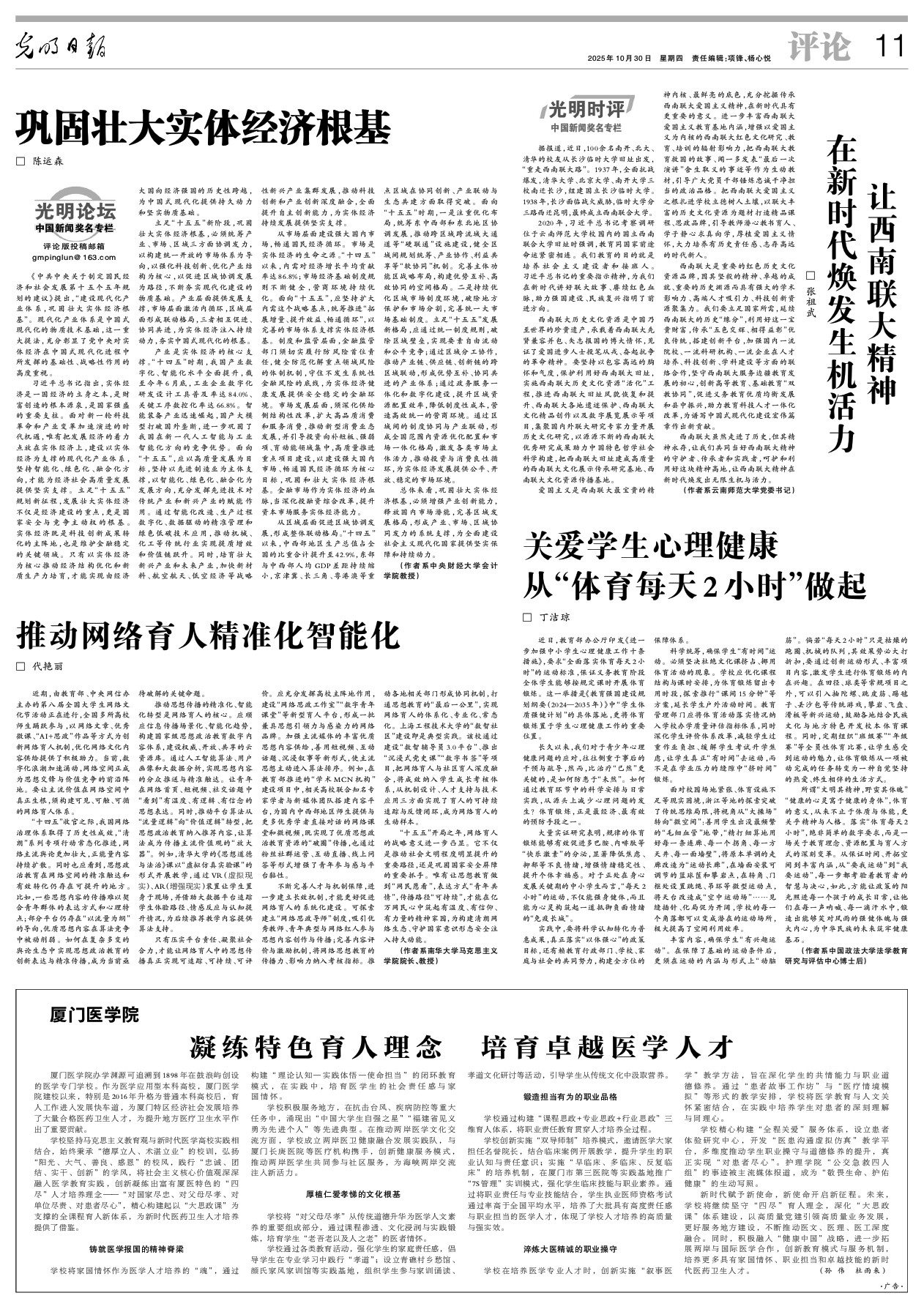 西南联大是重要的红色历史文化资源品牌,因其坚毅的精神、卓越的成就、重要的历史渊源而具有强大的学术影响力、高端人才吸引力、科技创新资源聚集力。我们要立足国家所需,延续西南联大的历史“缘分”,利用好这一宝贵财富,传承“五色交辉、相得益彰”优良传统,搭建创新平台,加强国内一流院校、一流科研机构、一流企业在人才培养、科技创新、学科建设等方面的联络合作,坚守西南联大服务边疆教育发展的初心,创新高等教育、基础教育“双教协同”,促进义务教育优质均衡发展和县中振兴,助力教育科技人才一体化改革,为谱写中国式现代化建设宏伟篇章作出新贡献。