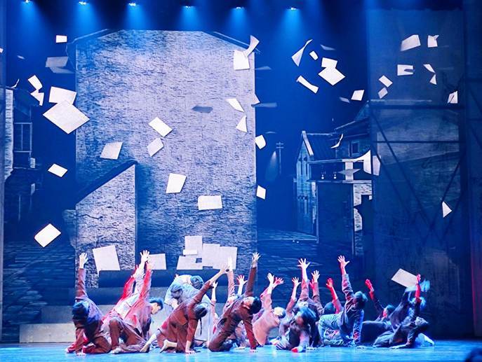 抗战胜利,硝烟未散,昆明成了全国民主运动的重镇。第三章《民主堡垒》聚焦“一二·一”运动,反内战的西南联大同学们遭到国民党当局镇压,4人牺牲,舞台上奔放的舞蹈演绎愤怒的热血。