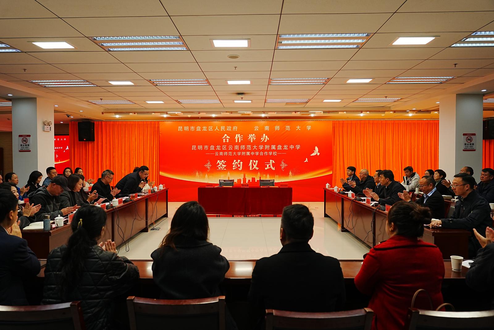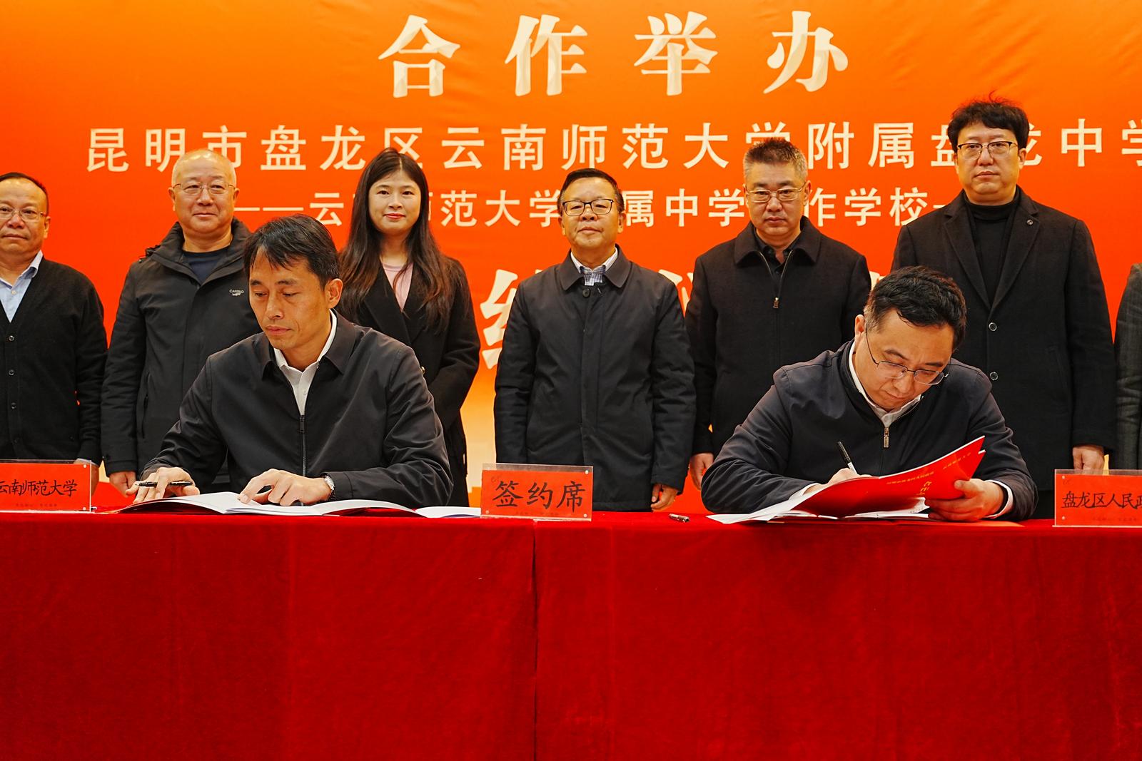 2025年11月18日,盘龙区人民政府与云南师范大学举行合作办学签约仪式,合作举办云南师范大学附属盘龙中学。云南师范大学副校长孟庆红,云南师范大学基础教育集团主任王玉光,云南师范大学附属中学校长孙毅,昆明市招生考试院院长李晏梅,盘龙区委书记沃磊,盘龙区委副书记、区人民政府区长张云以及校地双方相关领导出席签约仪式,盘龙区人民政府副区长蒋晓庆主持签约仪式。